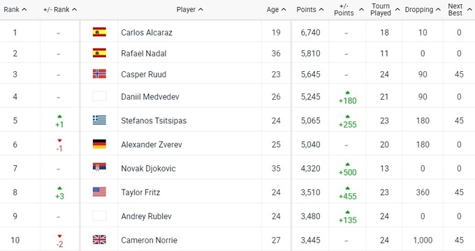 На прошлой неделе мужчины сыграли два турнира ATP 500 в Астане и в Токио. В Казахстане победу одержал серб Новак Джокович, благодаря чему он досрочно квалифицировался на Итоговый турнир ATP. В мировом рейтинге Новак остался седьмым. Финалист Стефанос Циципас вернулся в первую пятерку.