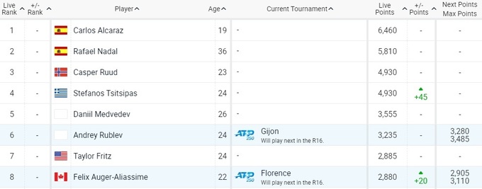 В Японии общую победу добыл американец Тейлор Фритц, это позволило ему обновить личное достижение в рейтинге ATP – восьмое место. Также с персональным рекордом (17-е место) начал неделю и финалист соревнований в Токио Фрэнсис Тиафо.