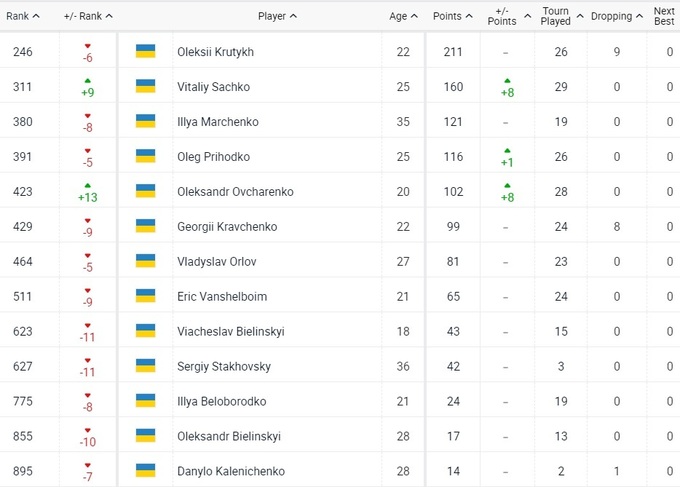 Среди украинцев по итогам прошлой недели добавили Виталий Сачко и Александр Овчаренко, у остальных ситуация намного хуже.