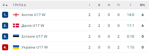 В первом матче группы подопечные Сергея Сапронова уступили Англии (0:11). Теперь же женская сборная Украины проиграла сверстникам из Дании (1:4). Следующий поединок сине-желтые проведут 13 октября против хозяек – команды Эстонии.