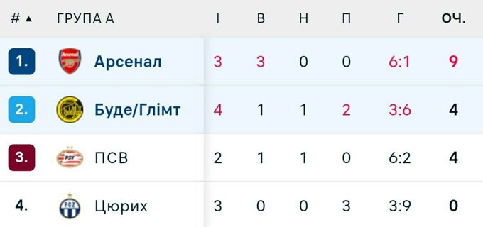 Сейчас «Арсенал» имеет в своем активе 9 очков из 9 возможных. «Канониры» уверенно лидируют в группе А, а «Буде-Глимт» с 4 очками занимает второе место.