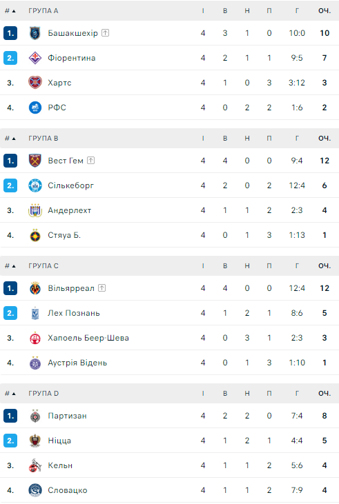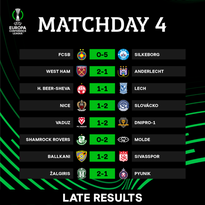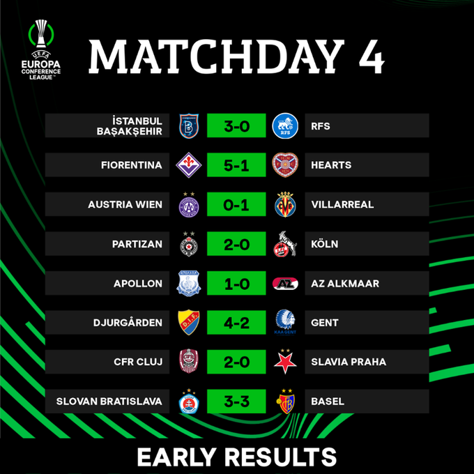 13 октября состоялись матчи 4-го тура Лиги конференций