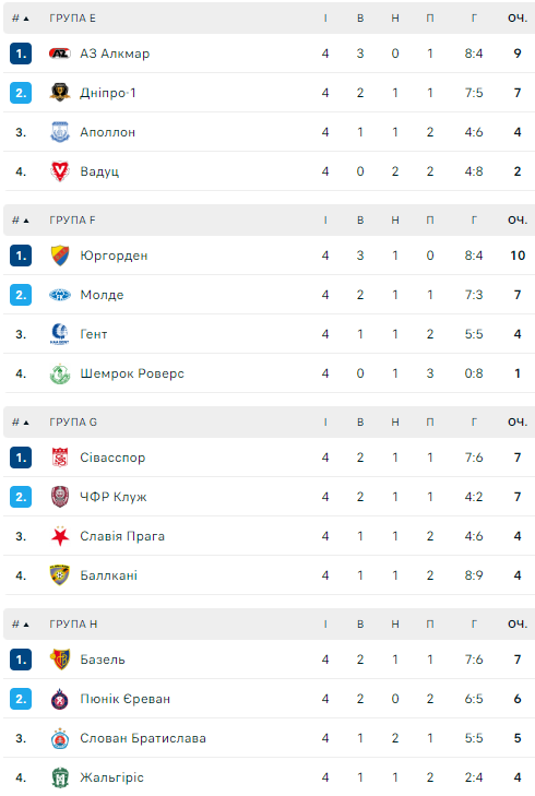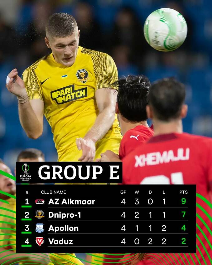 Итоги 4-го тура Лиги конференций. Победа Днепра-1, Аполлон остановил Алкмар