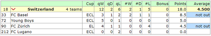 Из плюсов ситуации отметим, что плохо идут дела у Швейцарии, которая понизилась до 15-й позиции. Цюрих проиграл 4-й матч подряд, а Базель наиграл лишь на ничью, правда остается лидером своей группы.