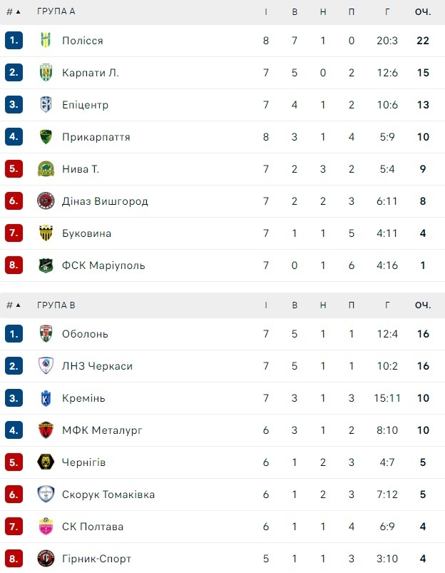 Турнирная таблица Первой лиги на 15 октября