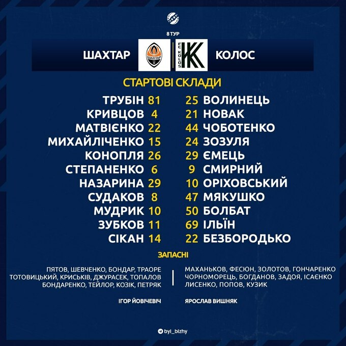 Шахтер – Колос. Назарина и Мудрик выйдут в основе