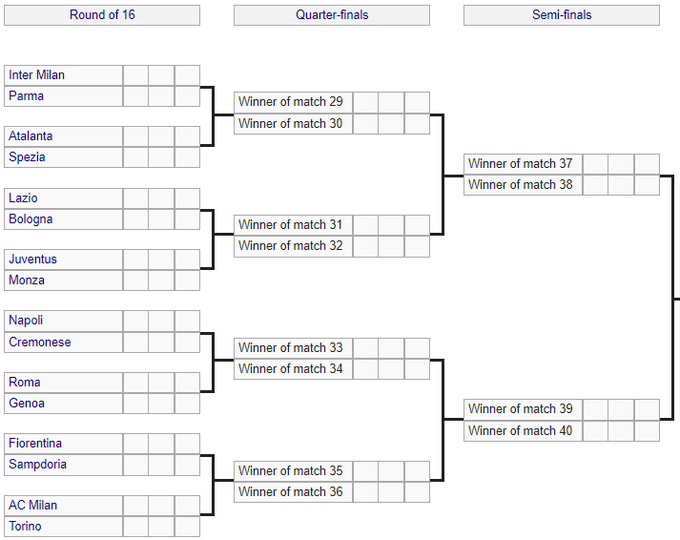 8 топ-клубов Серии A вступят в борьбу со следующей стадии. Определены все пары 1/8 финала.