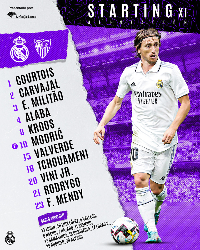 Стартовый состав «Реала»: Куртуа – Карвахаль, Милитао, Алаба, Менди, Кроос, Тчуамени, Модрич, Вальверде, Родриго, Винисиус.