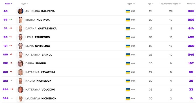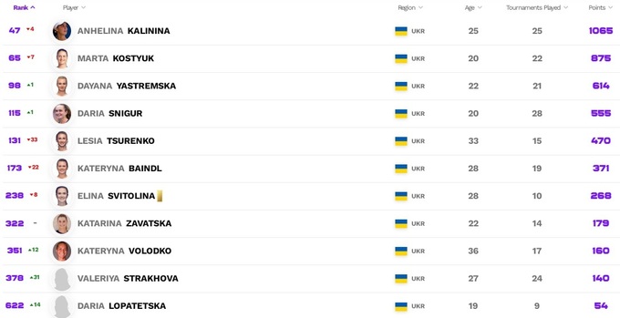 Что касается украинок, то немного улучшили свои позиции Даяна Ястремская и Дарья Снигур. У остальных наших теннисисток из топ-200 ситуация хуже.