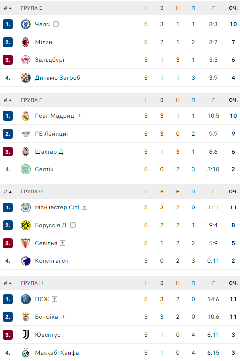 5-й тур ЛЧ. Турнирные таблицы. 9 клубов уже в плей-офф. Что нужно Шахтеру?