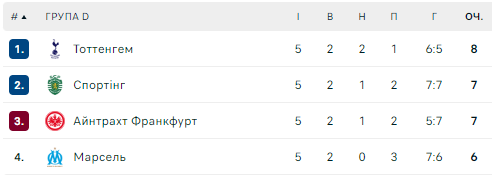 Ситуация в группе: «Тоттенхэм» (8 очков), «Спортинг» (7), «Айнтрахт» (7), «Марсель» (6).