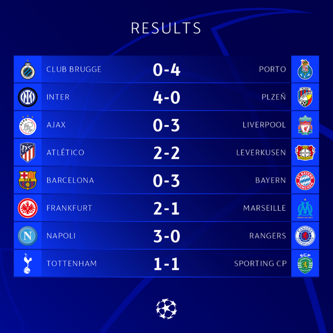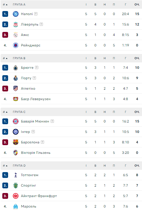 5-й тур ЛЧ. Все таблицы. Определено 12 из 16 клубов, вышедших в 1/8 финала