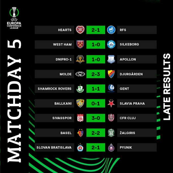 27 октября состоялись матчи 5-го тура Лиги конференций