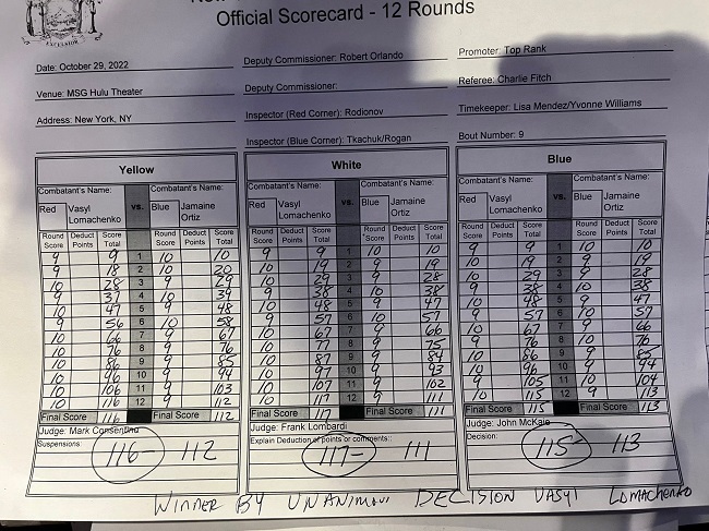 ФОТО. Стали известны судейские записки боя Ломаченко – Ортис