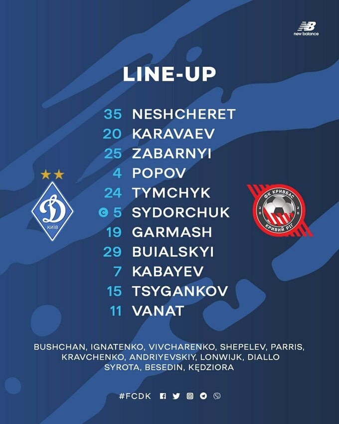 «Динамо»: Нещерет – Тымчик, Забарный, Попов, Караваев, Сидорчук, Гармаш, Буяльский, Цыганков, Кабаев, Ванат.