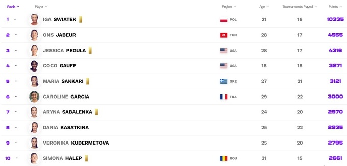 Рейтинг WTA. Байндл поднялась на 35 позиций, Олейникова – на 86
