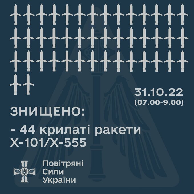31 октября российские оккупанты осуществили несколько волн ракетных атак по объектам критической инфраструктуры Украины.