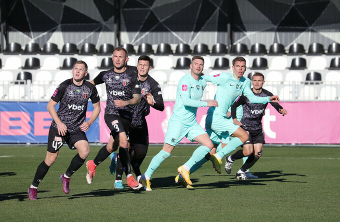 Равный, однако быстрый футбол в первой половине игры не оставлял в покое ни на минуту. Команды Ярослава Вишняка и Юрия Вирта не очень беспокоились качеством собственных передач как в атаке, так и в линии обороны, поэтому внезапные единичные моменты у обоих ворот возникали постоянно. В этом плане, конечно, гости выглядели более напуганными, ведь только по итогам ошибок Гагуна и Курко на правом фланге Ильин и Кузык должны были записывать на свой счет забитые мячи.