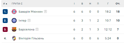 Из группы С «Бавария» (18 очков) и «Интер» (10 очков) вышли в плей-офф ЛЧ.