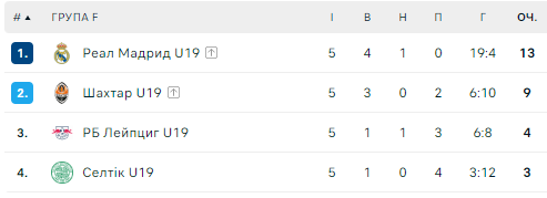 Группа F. Турнирная таблица