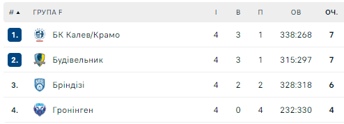 Будивельник (Украина) – Бриндизи (Италия) – 93:83 (23:27, 22:8, 22:28, 26:20)
