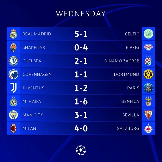 2 ноября состоялись заключительные поединки 6-го тура Лиги чемпионов. Ниже приведены их результаты.