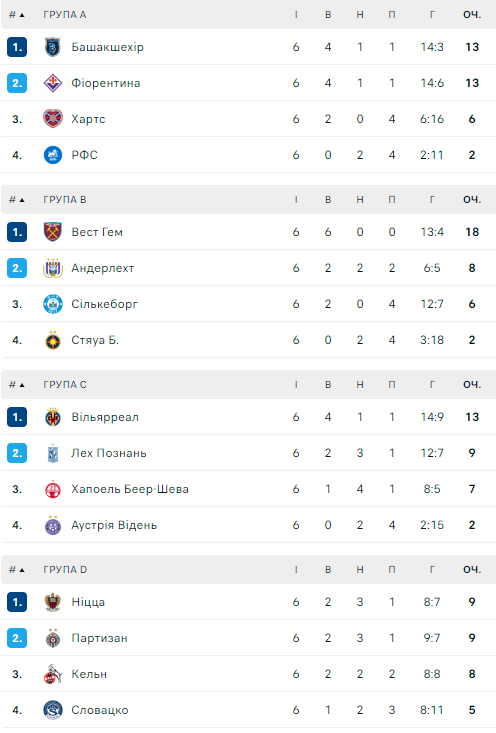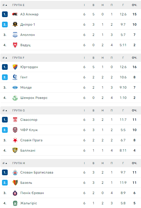 Итоги групп Лиги конференций. Определены потенциальные соперники Днепра-1