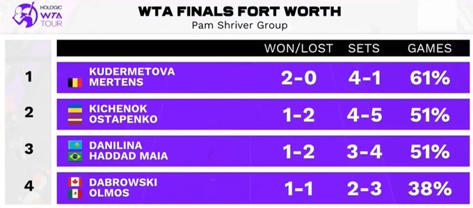Эта победа сохраняет для Киченок и Остапенко шансы на выход в полуфинал. Для этого нужно, чтобы во втором матче игрового дня дуэт Габриэла Дабровски / Джулиана Олмос проиграл паре Вероника Кудерметова / Элизе Мертенс.