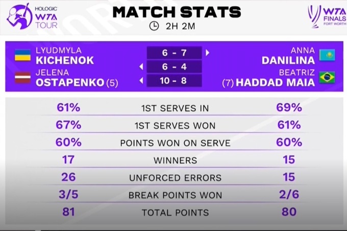Людмила Киченок / Алена Остапенко – Анна Данилина / Беатрис Хаддад Майя – 6:7(7), 6:4, 10-8