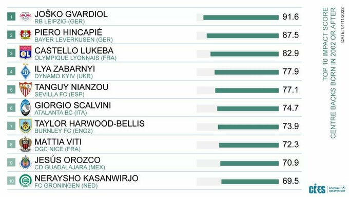 Международная футбольная обсерватория CIES опубликовала рейтинг лучших защитников Европы по влиянию на игру среди футболистов 2002 года рождения и младше. Украинец получил оценку 77.9 балла.