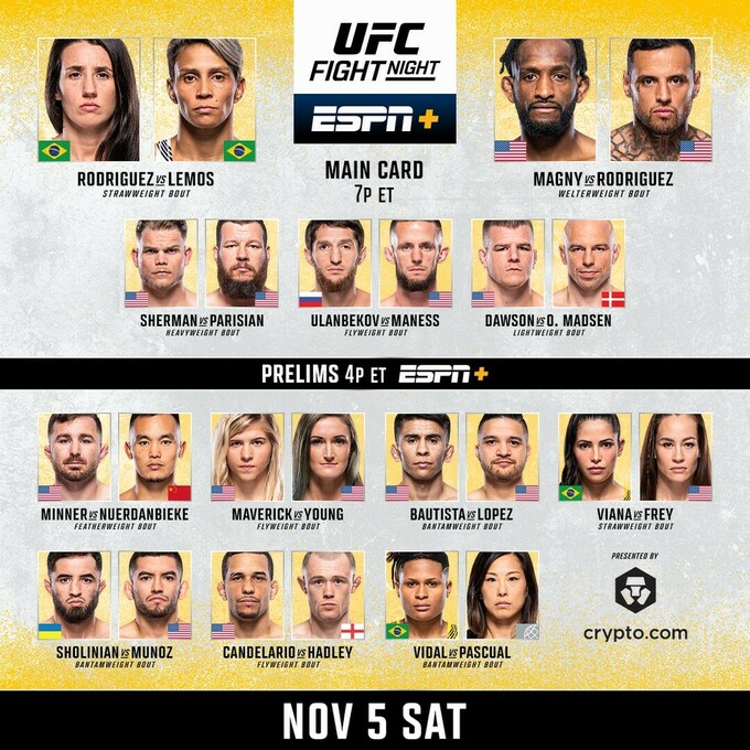 UFC. Родригес – Лемос, Муньос – Шолинян. Смотреть онлайн. LIVE трансляция