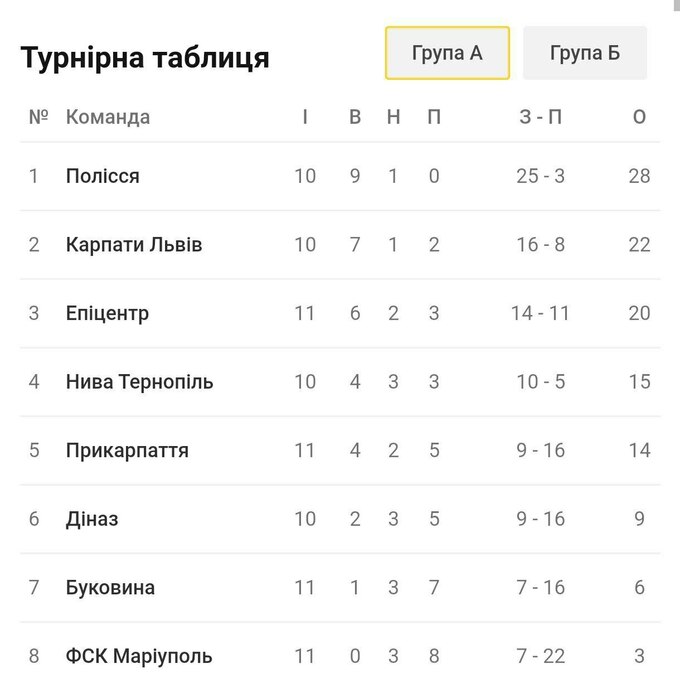 Турнирное положение в Первой лиге. Группа А