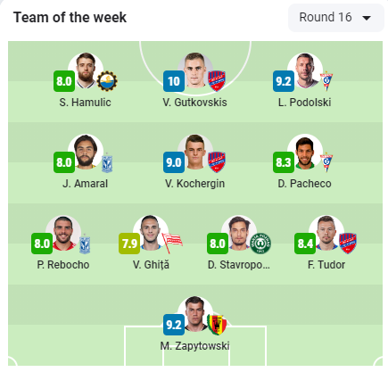 Символическая сборная 16-го тура чемпионата Польши (SofaScore)