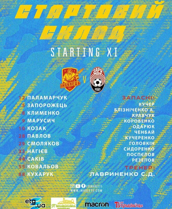 «Ингулец»: Паламарчук, Запорожец, Клименко, Марусич, Козак, Павлов, Смоляков, Нагиев, Саков, Ковалев, Кухарук