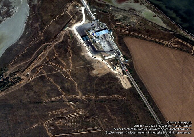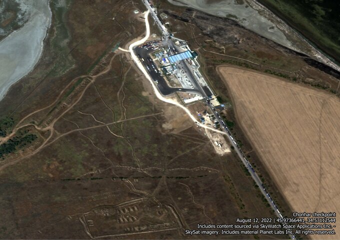 На снимках видно, что российские оккупанты роют окопы на севере Крыма. В частности, россия возобновила траншеи КПВВ «Чонгар», что между Крымом и Херсонской областью. Также были построены новые траншеи.