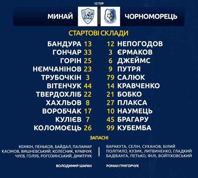 Минай – Черноморец. Известны стартовые составы на матч 12-го тура УПЛ