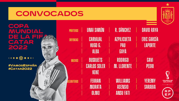 На групповом этапе ЧМ-2022 сборная Испании сыграет в квартете E с Коста-Рикой, Германией и Японией.