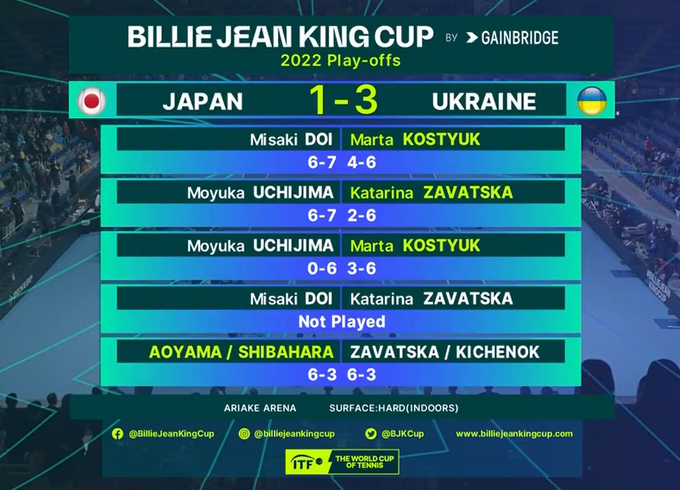 Своей победой над Учидзимой Марта решила все вопросы о победителе противостояния Японии и Украины. Украинская сборная обыграла японок со счетом 3:0, и теперь сыграет в квалификации к финалу Кубка Билли Джин Кинг.