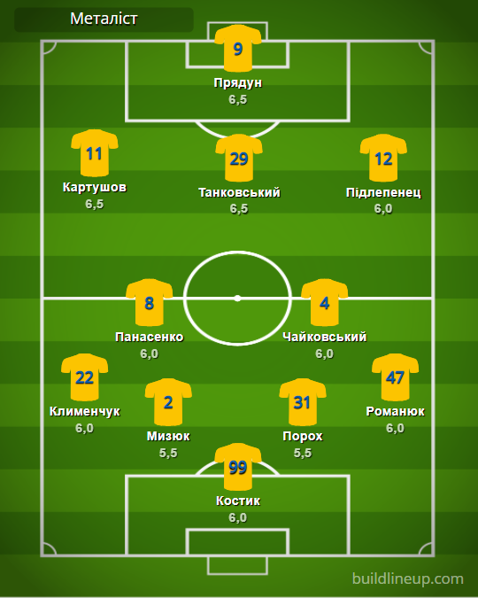 «Металлист»: Костик – Клименчук (Каплиенко, 71), Мизюк, Порох, Романюк – Панасенко (Кныш, 62), Чайковский (Демченко, 50) – Картушов, Танковский, Подлепенец – Прядун.