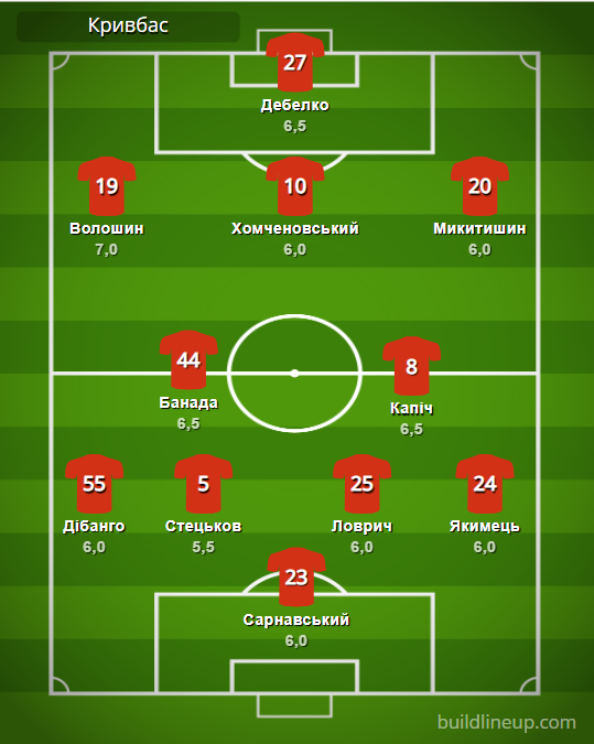 «Кривбасс»: Сарнавский – Дибанго, Стецьков (Зотько, 46), Ловрич, Якимец – Банада, Капич (Татарков, 90+2) – Волошин, Хомченовский, Микитишин (Задерака, 46) – Дебелко (Устименко, 89).