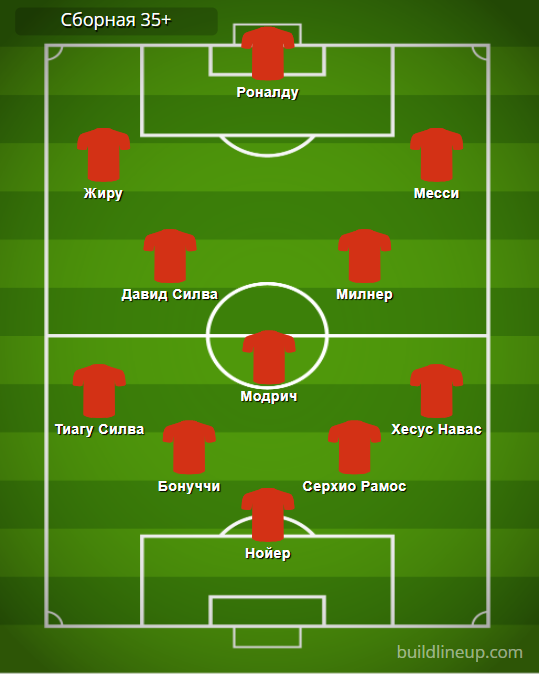 Центр полузащиты – зона Луки Модрича. Невысокий (172 см), в то же время, техничный и до сих пор быстрый хорват, прекрасно владеющий ударами с обеих ног, и в 37-летнем возрасте стоит 10 млн евро. И в свои годы он – полноценный игрок основы «Реала», регулярно и забивает, и ассистирует, часто выигрывает дуэли у значительно более молодых оппонентов в центре поля. Играет жестко, но в то же время не слишком грубо. Словом, важная тактическая единица в предлагаемом варианте ветеранской сборной.