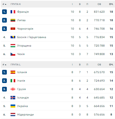 В других матчах игрового дня Грузия проиграла Италии (84:85), и это очень выгодный результат для сине-желтых, Испания нанесла поражение Нидерландам (84:72).