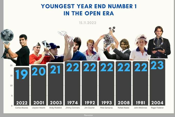 К слову, Рафаэль Надаль завершил сезон первым в рейтинге в 22 года, а Роджер Федерер – в 23.