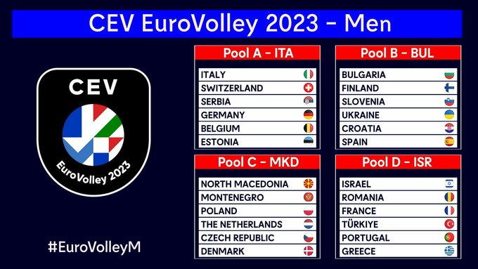 Сегодня состоялась жеребьевка группового этапа мужского чемпионата Европы 2023 года по волейболу, который пройдет с 28 августа по 16 сентября.