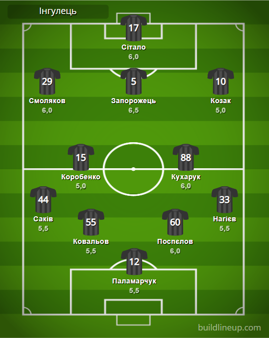 «Ингулец» (замены): В. Близниченко – 6,5, Клименко – 6,0, А. Близниченко – 6,0, Резепов – б/о, Марусич – б/о.