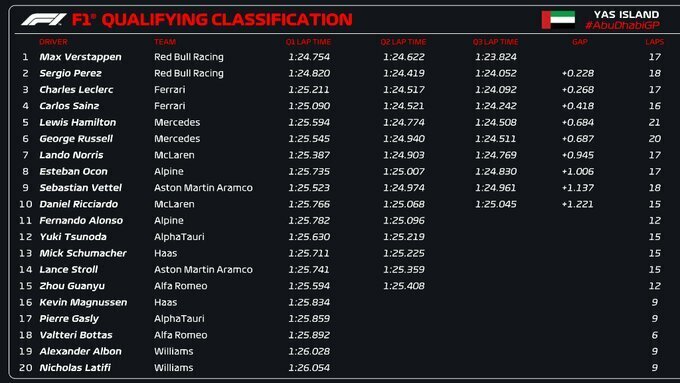Состоялась финальная квалификация сезона Формулы-1 в Абу-Даби. Последний поул чемпионата забрал пилот Ред Булла Макс Ферстаппен.