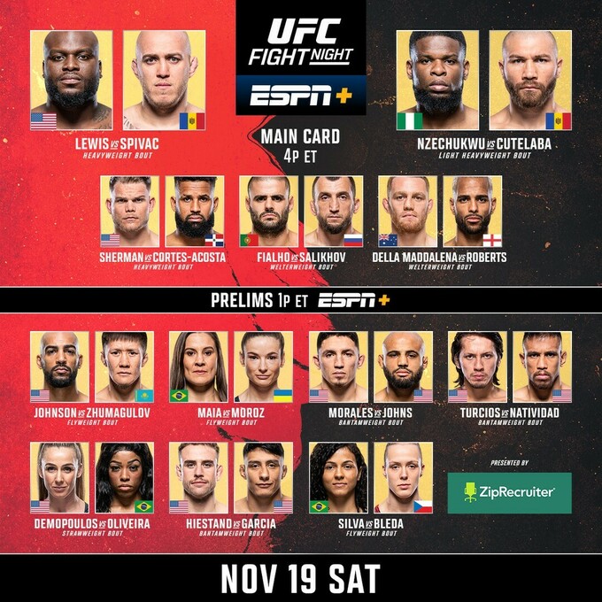 UFC: Деррик Льюис – Сергей Спивак, Дженнифер Майя – Марина Мороз. LIVE