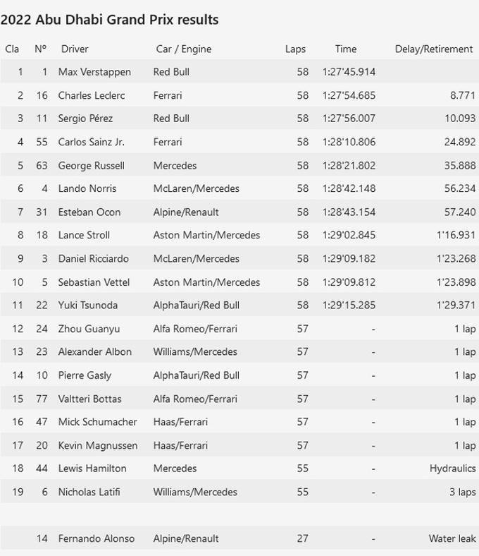 Гонка в Абу-Даби стала последней для Даниэля Риккардо в Макларене, Мика Шумахера в Хаасе и Николаса Латифи в Уильямсе. Все они пропускают сезон-2023.