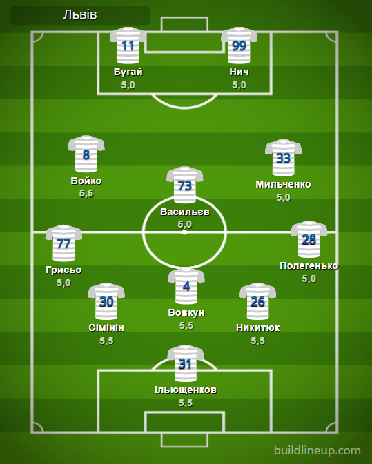 «Львов» (замены): Шишка – 5,5, Крушинский – 5,5, Муравский – 5,5, Ременяк – 5,5.