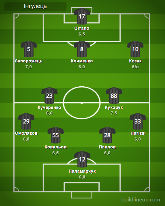 «Ингулец» (замены): Марусич – 7,0, Поспелов – 6,0, Одарюк – б/о, Коробенко – б/о, Головкин – б/о.